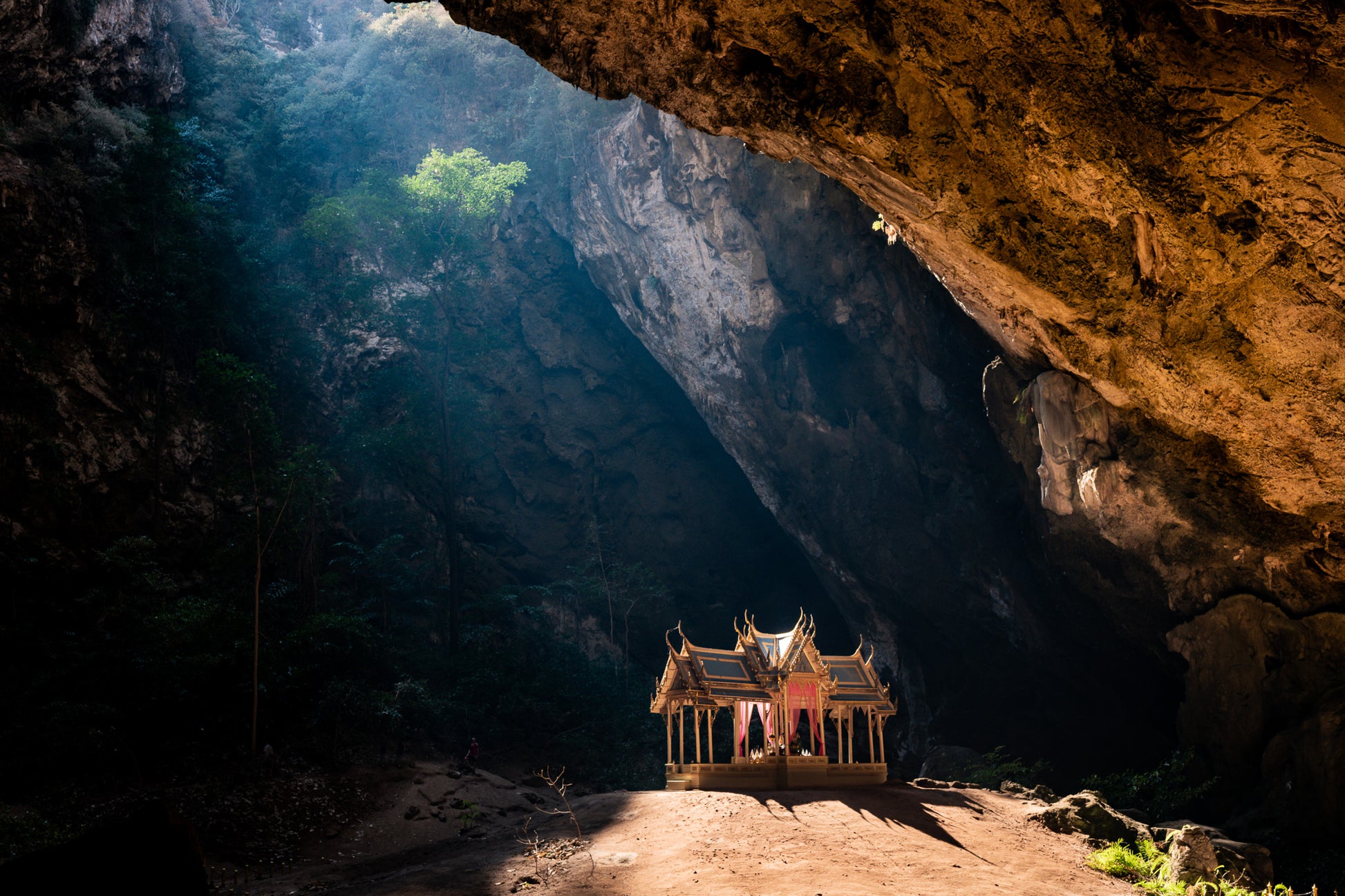 A somewhat difficult hike from a remote fishing village leads to this beautiful breathtaking view of this shrine. The light travels in and throughout the cave, striking the temple just right in mid-morning.